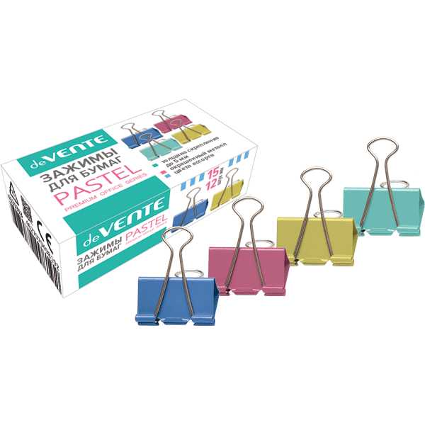 Зажим для бумаги 15 мм deVente 4131313 цветной