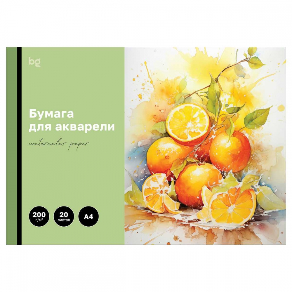 Папка для акварели A4 20 л.BG Яркий цитрус (200 г/м2)