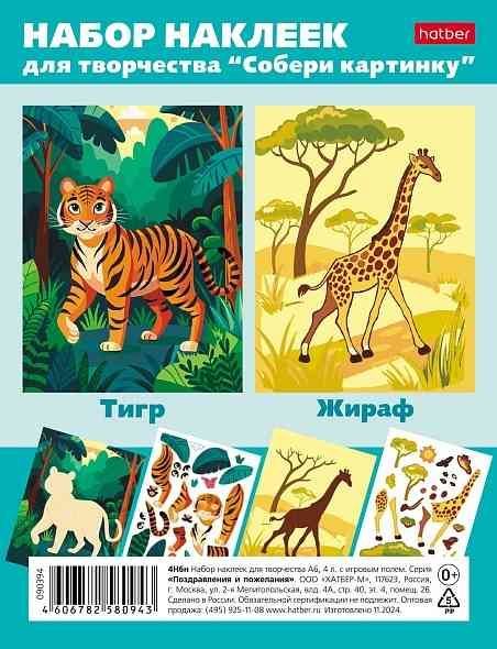 Наклейки A6 4 л.Хатбер Собери картинку Тигр/Жираф