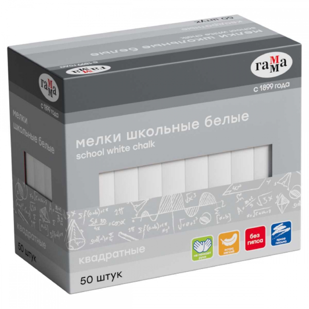 Мелки белые квадратные 50 шт.Гамма
