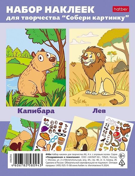 Наклейки A6 4 л.Хатбер Собери картинку Капибара/Лев