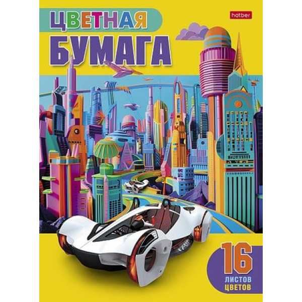 Цветная бумага A4 16 л.16 цв.Хатбер Автомобиль будущего