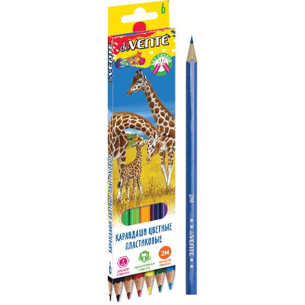 Карандаши цветные пластиковые 6 цв.deVente 5021307 Животный мир
