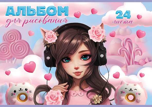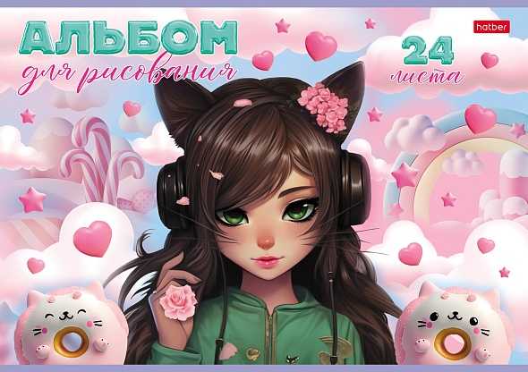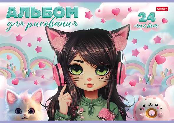 Альбом для рисования 24 л.A4 Хатбер Девочка-кошка