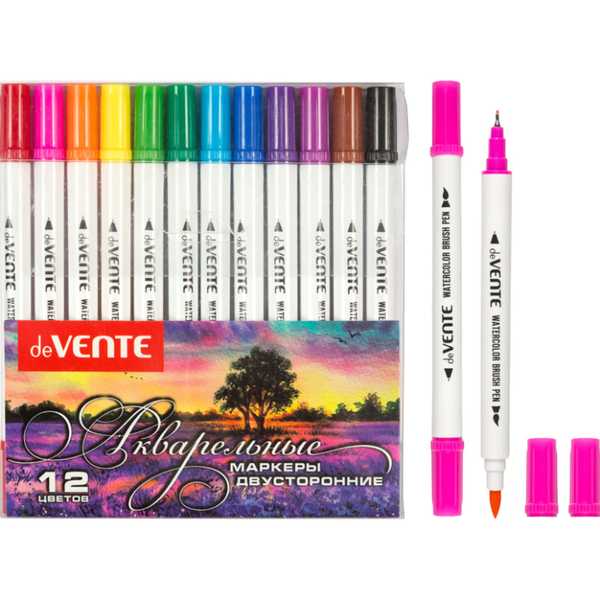 Маркеры акварельные двусторонние (0,4/2 мм) 12 цв.deVente 5044411