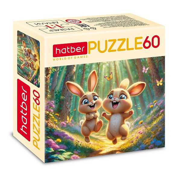 Пазлы 60 элементов (165x230 мм) Хатбер Лесные малыши