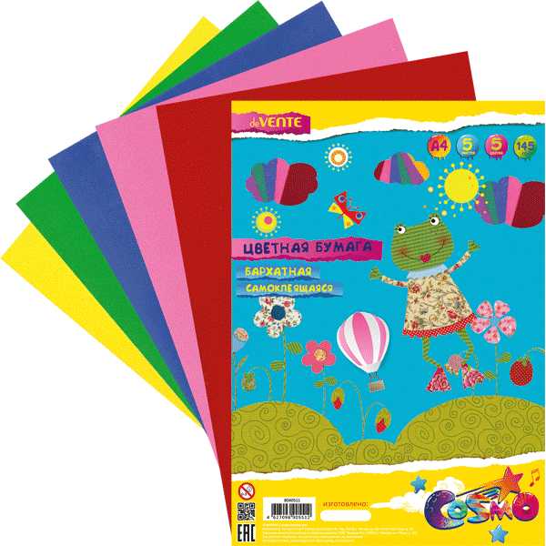 Цветная бархатная самоклеящаяся бумага A4 5 л.5 цв.deVente 8040511